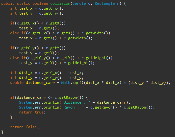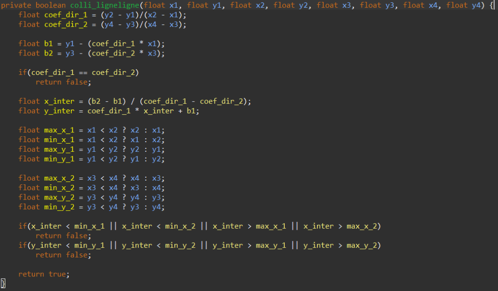 Vous pouvez trouver ci-dessous l’ensemble des codes utilisés pour la détection des collisions.