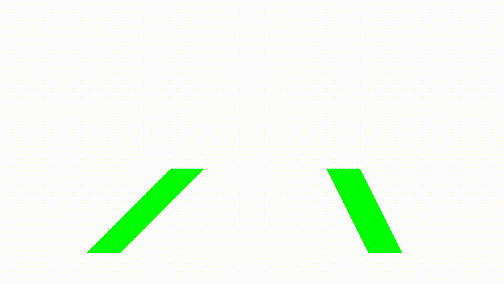 On voit donc sur cette animation deux polygones à 4 côtés qui deviennent rouge lorsqu’ils entrent en collision et sinon sont verts. Ce ne sont pas des rectangles inclinés, mais le principe mathématique mis en place derrière cette simulation fonctionne dans tous les cas de polygones, même pas besoin de se limiter à 4 côtés.